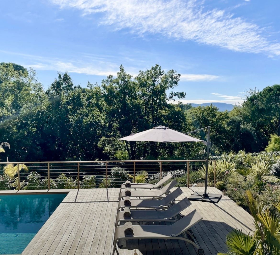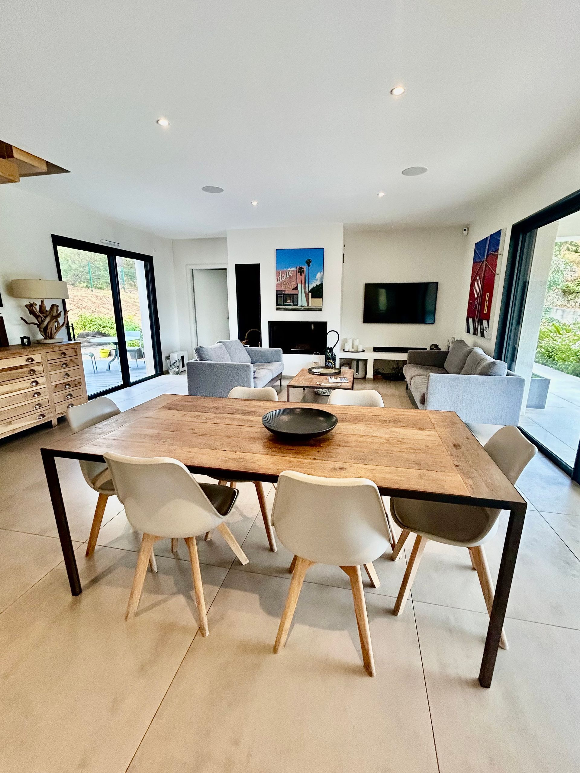 Située sur la commune de Grimaud, en pleine nature, cette belle villa de 200m2 sur un terrain de 2000m2 a été construite il y a 3 ans. Elle dispose d'un grand séjour avec sa cuisine ouverte, d’une belle terrasse couverte donnant sur un espace détente avec une piscine chauffée. La villa est spacieuse et lumineuse, avec une exposition plein sud.